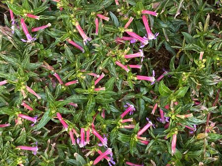 Close up of cigar flowers (cuphea caeciliae) in bloom