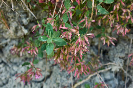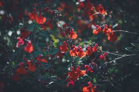 Red tiny flowers of Eyelash-Leaved Sage, also known as, Salvia blepharophylla