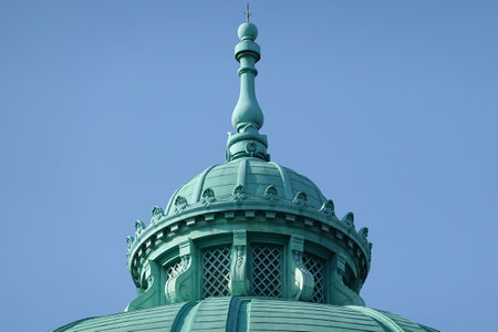 Prague, Czech Republic - 6.05.2019: Roof of Pantheon at the National Museum in neo-renaissance style, recently renovated in 2018, located on Wenceslas Square in Prague, Czech republic