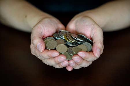 Giving Alms to the poor. Inflation and economic problems, unemployment and lack of money, concept.