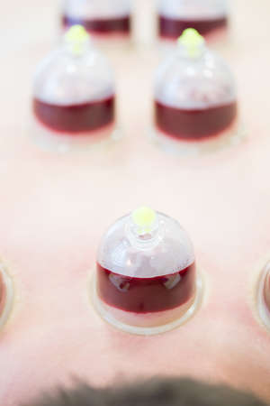 Hijama - the treatment of bloodletting. Attached vacuum cup. Blood fills in the cup.