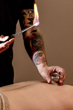 Therapist doing traditional chinese cupping therapy on her patient