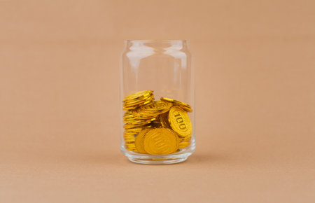 A close-up of a jar of coins placed firmly on a flat surface, representing stability.