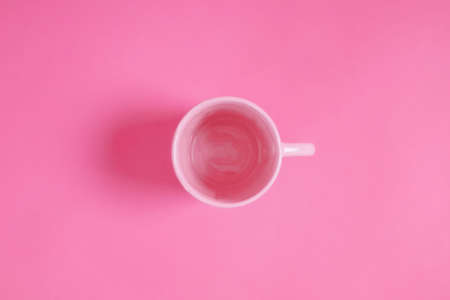Pink cup of water on a pink scene.Simplicity taken from a bird's eye view.light and shadow in the studio