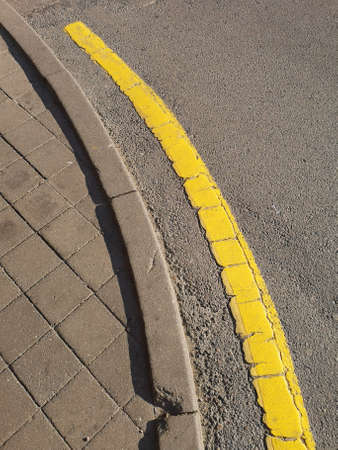 Concrete sidewalk with yellow and white curb