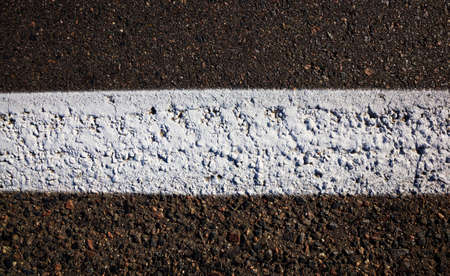white road markings in the form of a white line drawn on black asphalt to separate car lanes, close-up