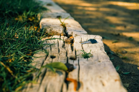 Lost keys in the Park on the sidewalk. High quality photo