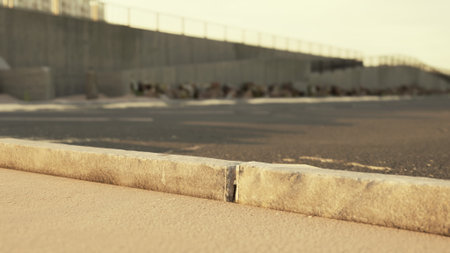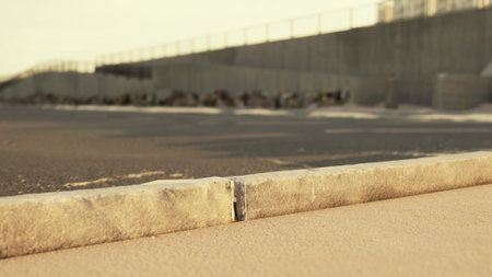 construction of road and sidewalk, close-up of a large curb