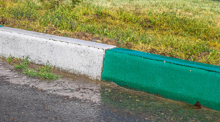 Multi-colored road borders. kerbstones