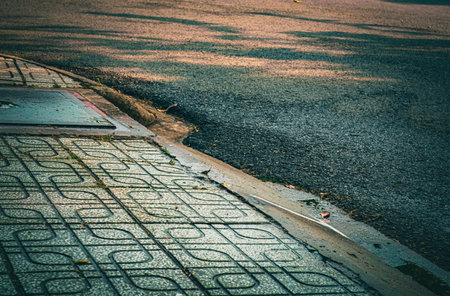 detail turning point of a side walk with street