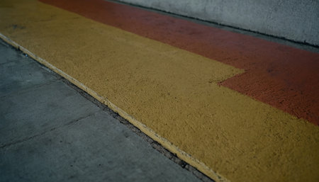 Yellow and red line on the floor in the parking lot. Selective focus.