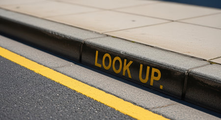 Urban curbside inspirational message with yellow street lines