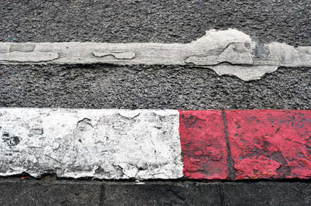 Road with red white sidewalk do not parking, The red and white streets are not allowed to park in Thailand, Red and white, no parking sign. Do not park on the road
