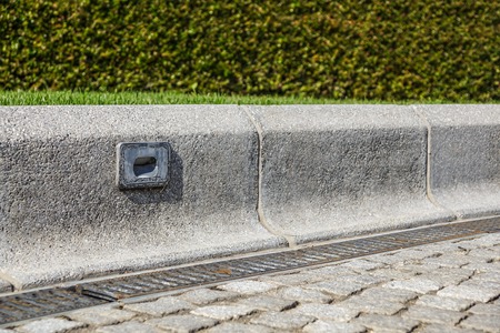 stone drain with asphalt and green lawn in the park