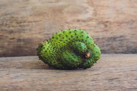 Guanabana on an old wooden background - exotic tropical fruit - regional fruits from Vietnam.