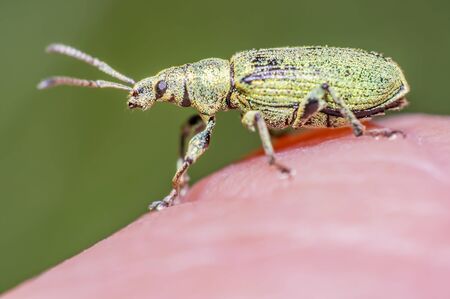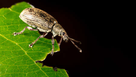 Closeup on a plant parasite weevil , Liophloeus tessulatus , the larvae of which live 2 years in the roots of various plants.