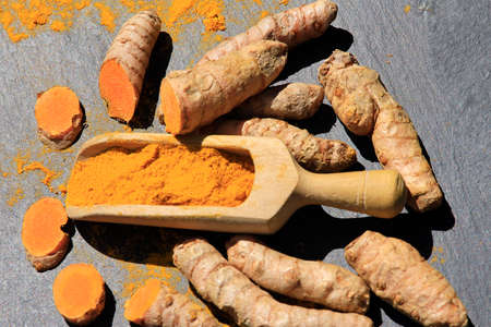 Turmeric - Curcuma longa root and turmeric powder for alternative medicine.