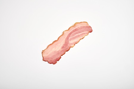 Bacon strip, raw smoked pork meat slice isolated on white background