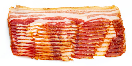 Sliced pork bacon on a white background