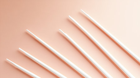 A stylish and minimalist composition of white wooden chopsticks arranged on a soft peach background. Perfect for culinary art, dining experiences, and food presentation.