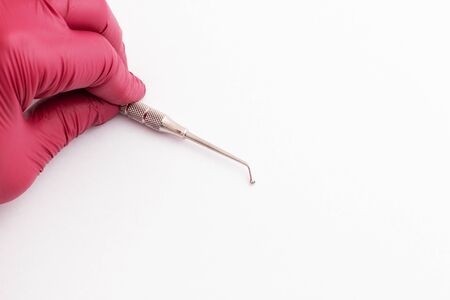 dentist tools on white background with hand red glow
