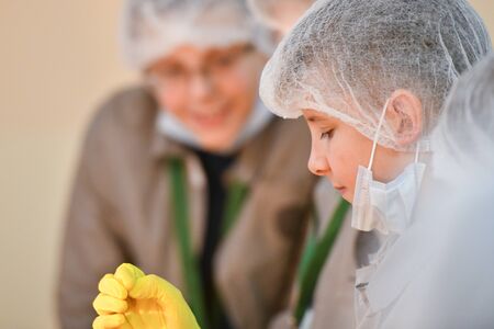 Group of children doing their dream job as Biologists at the laboratory. Concept of Creativity, Happiness, Dream come true and Teamwork.