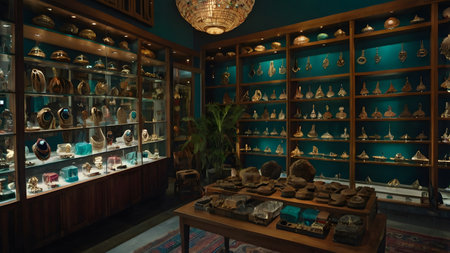 Prague, Czech Republic - August 23, 2023: Collection of minerals in Dinosaur Museum in Prague. High quality photo