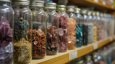 A laboratory filled with carefully labeled jars containing various minerals and elements as scientists yze their properties for any potential magnetic monopoles