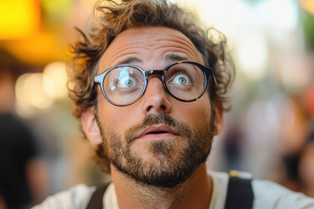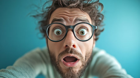 Shocked man with glasses and messy hair showing surprise emotion
