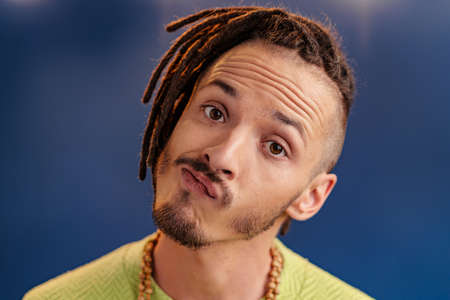 Portrait of a happy positive guy with dreadlocks