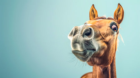 A whimsical close-up of a donkey's face highlights its playful and curious expression. the image showcases detailed fur textures and expressive eyes, capturing the charm and character of the donkey in a humorous and engaging way. Generative AI