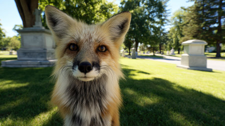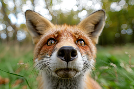 Fox Close up Portrait, Fun Animal Looking into Camera, Fox Nose, Wide Angle Lens, Funny and Adorable Animal, Oversized Cute Nose, Generative AI Illustration