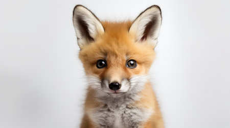 A stunning wildlife portrait of a red fox with thick orange fur and sharp features, gazing upward. Captured in soft studio lighting against a clean background, exuding elegance.