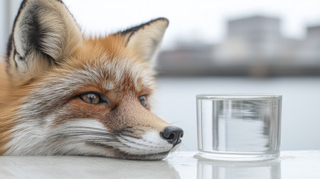 An AI generated illustration of a red fox staring straight ahead while looking upwards