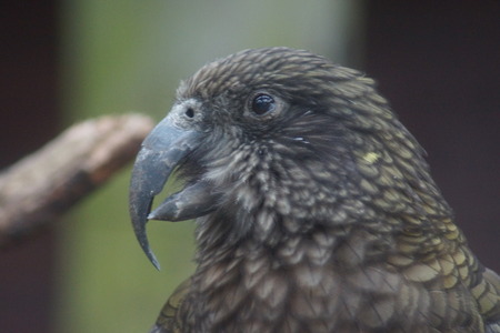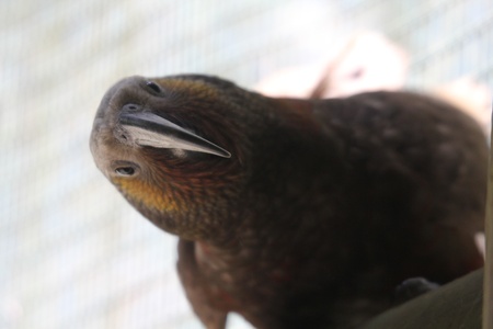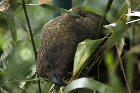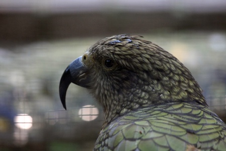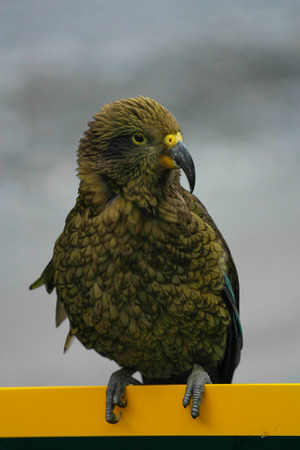 Kea parrot on display in New Zealand. Alpine parrot known for being mischievious