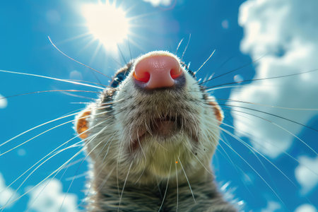 Ferret Close up Portrait, Fun Animal Looking into Camera, Ferret Nose, Wide Angle Lens, Funny and Adorable Animal, Oversized Cute Nose, Generative AI Illustration
