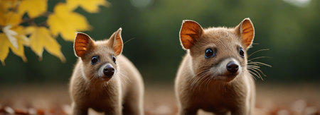 Close up of two small animals outdoors in autumn