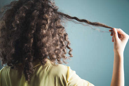 texture of male curly hair close up. perm for men. stylish hairdo.