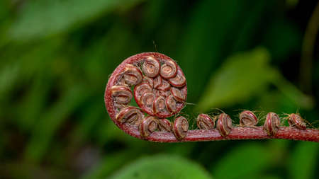 closeup of spiral bud of fern plant with unique pattern and shape
