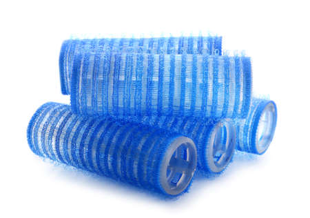 women's invisible hair clips on the background of curlers. taken in close-up, with a place for text or an object or advertisement on a white background.