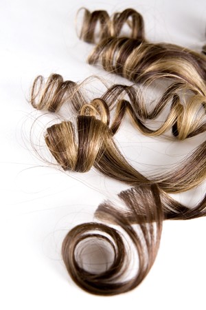 Curls curled on the Curling iron. one strand of blonde or red hair, hair care, concept