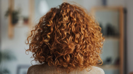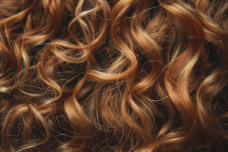 Stunning curls of honey-colored hair, showcasing their shine and bouncy texture, illuminated elegantly by gentle, natural light. Generative AI.