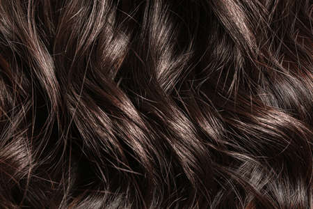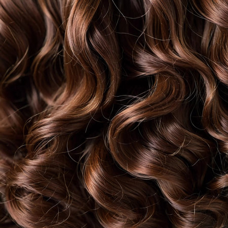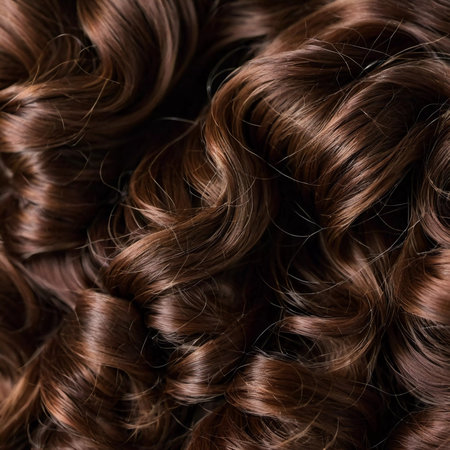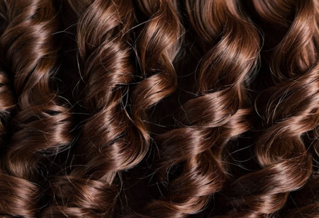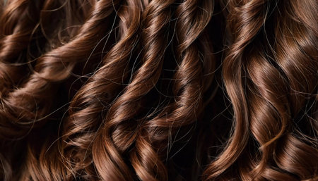 Highresolution image displaying the detailed texture of lustrous, wavy brown hair