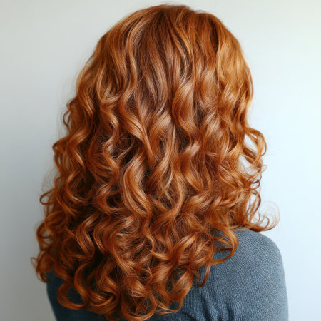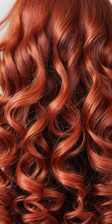 Soft, bouncy curls of auburn hair flow gracefully, showing vibrant color and texture.