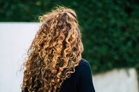 texture of male curly hair close up. perm for men. stylish hairdo.