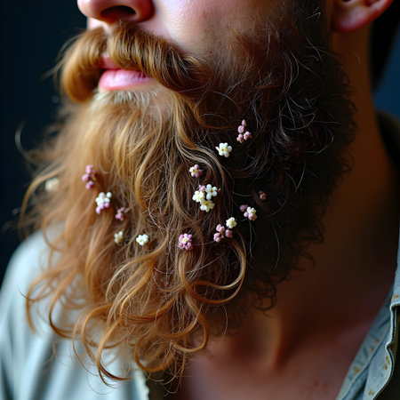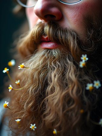 Artistic male beard with flowers