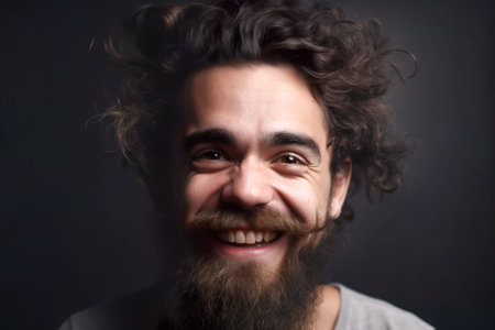 Close-up portrait of a funny man with a beard and mustache. Generative AI.