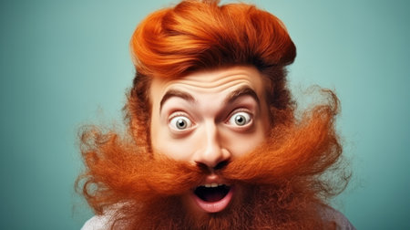 red bearded guy with open mouth and big eyes. closeup portrait