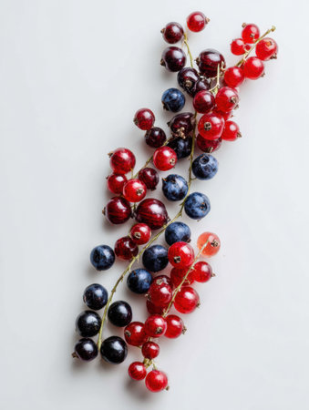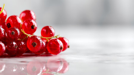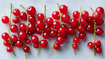 This image features a stunning arrangement of fresh red currants on a light background, highlighting their vibrant color and suitability for a variety of culinary uses.