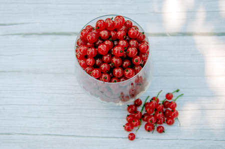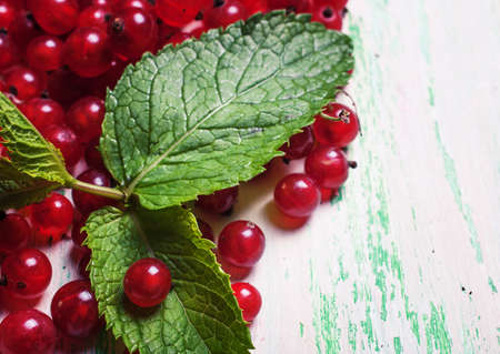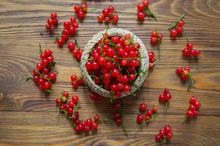 Red currant is on wooden background
